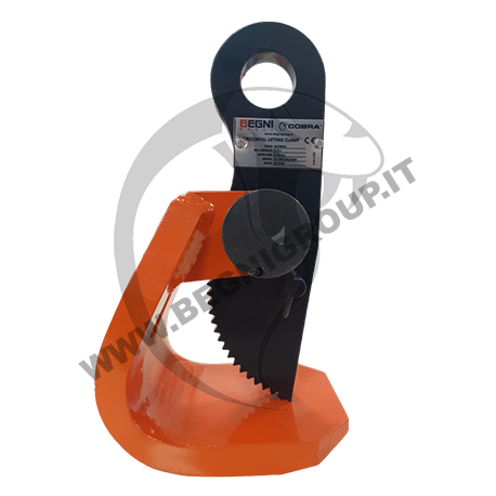 Clamp designed for lifting and transport of steel plates and other non-deflecting materials in horizontal position.